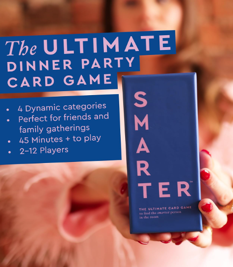 Possible the perfect Valentine’s present. A card game that’s made for exactly this moment: Smarter The Ultimate Card Game – fast, funny, and fiercely competitive in the best way.
