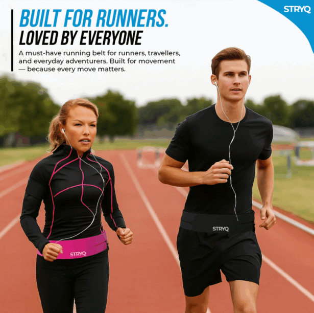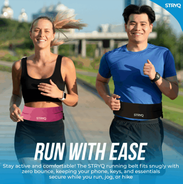 STRYQ Running Belt: secure, bounce-free storage for phones, keys, and gels